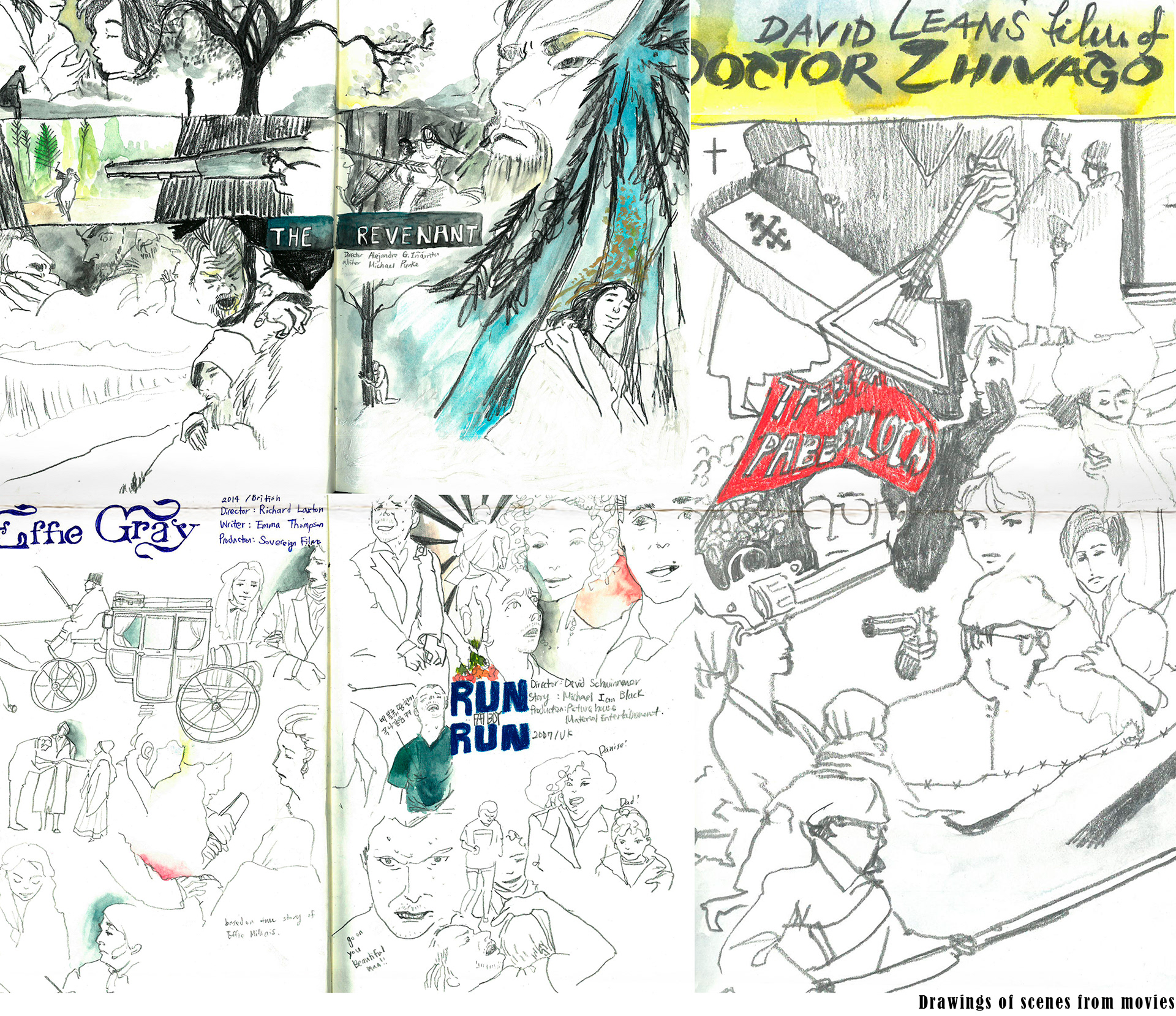 Pencil drawings of Movie scenes and some urban sketches